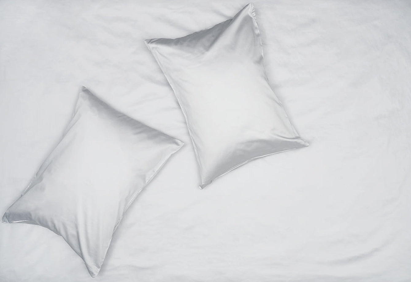 Die Bettwäsche aus hellgrauer ägyptischer Baumwollsatin bietet eine weiche und zeitgemässe Neutralität, die das Schlafzimmer mit zurückhaltender Eleganz erhellt. Der Stoff wird aus langfaseriger Pima-Baumwolle mit einer glatten Satinbindung mit einer Fadenzahl von 300 gewebt und bietet aussergewöhnliche Weichheit, Atmungsaktivität und einen raffinierten Satinschimmer. Der hellgraue Farbton schafft eine ruhige und moderne Grundlage für anspruchsvolle Innenräume.