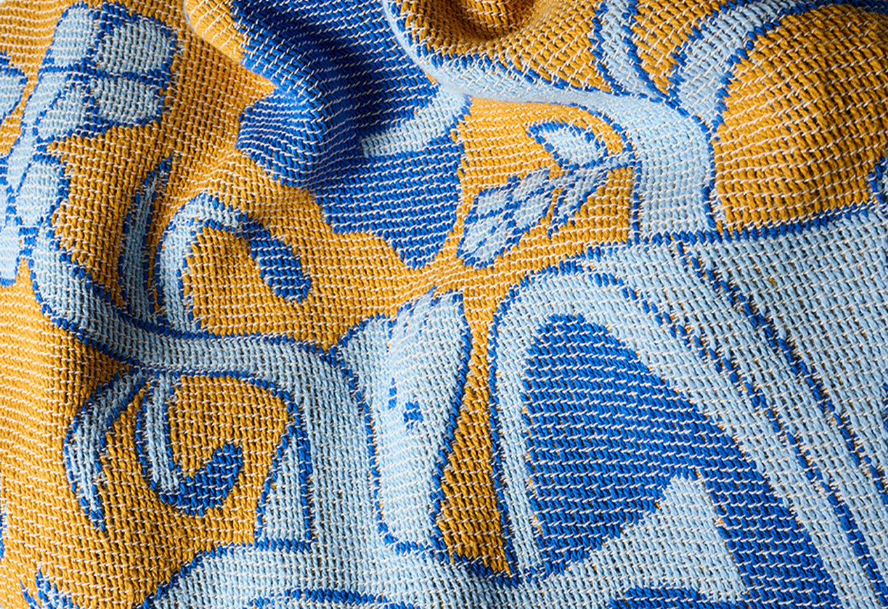 Unsere Decken und Überwürfe werden in Europa aus 100 % recycelter Baumwolle jacquardgewebt, die den OEKO-TEX® STANDARD 100 24CX00094 CENTROCOT erfüllt. Jedes Design stammt von internationalen Künstlern und wird direkt in das Gewebe eingebettet, um dauerhafte Farben zu erhalten - nie gedruckt, nie synthetisch. Sie sind weich und dennoch widerstandsfähig und lassen sich mühelos vom Sofa in den Sand, in den Garten, an den Pool oder zum Picknick mitnehmen. Kunst trifft auf Vielseitigkeit - durch Präzision, Zweckmäßigkeit und Handwerk.