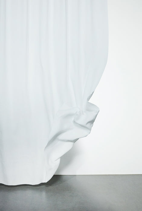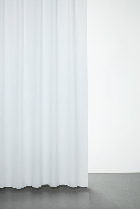 Die weiße Farbe verleiht jedem Raum Klarheit und Leichtigkeit. Ihre sanft strukturierte Oberfläche und die natürliche Farbtiefe unterstreichen die Schlichtheit des Hanfs und schaffen eine Atmosphäre der Ruhe, Ausgewogenheit und Zeitlosigkeit. Der Stoff fällt fließend und fängt das Licht auf subtile und elegante Weise ein.