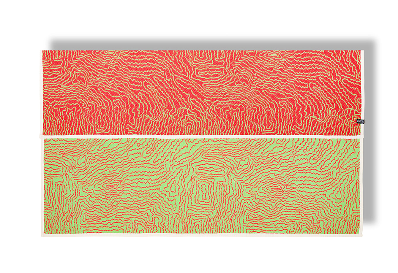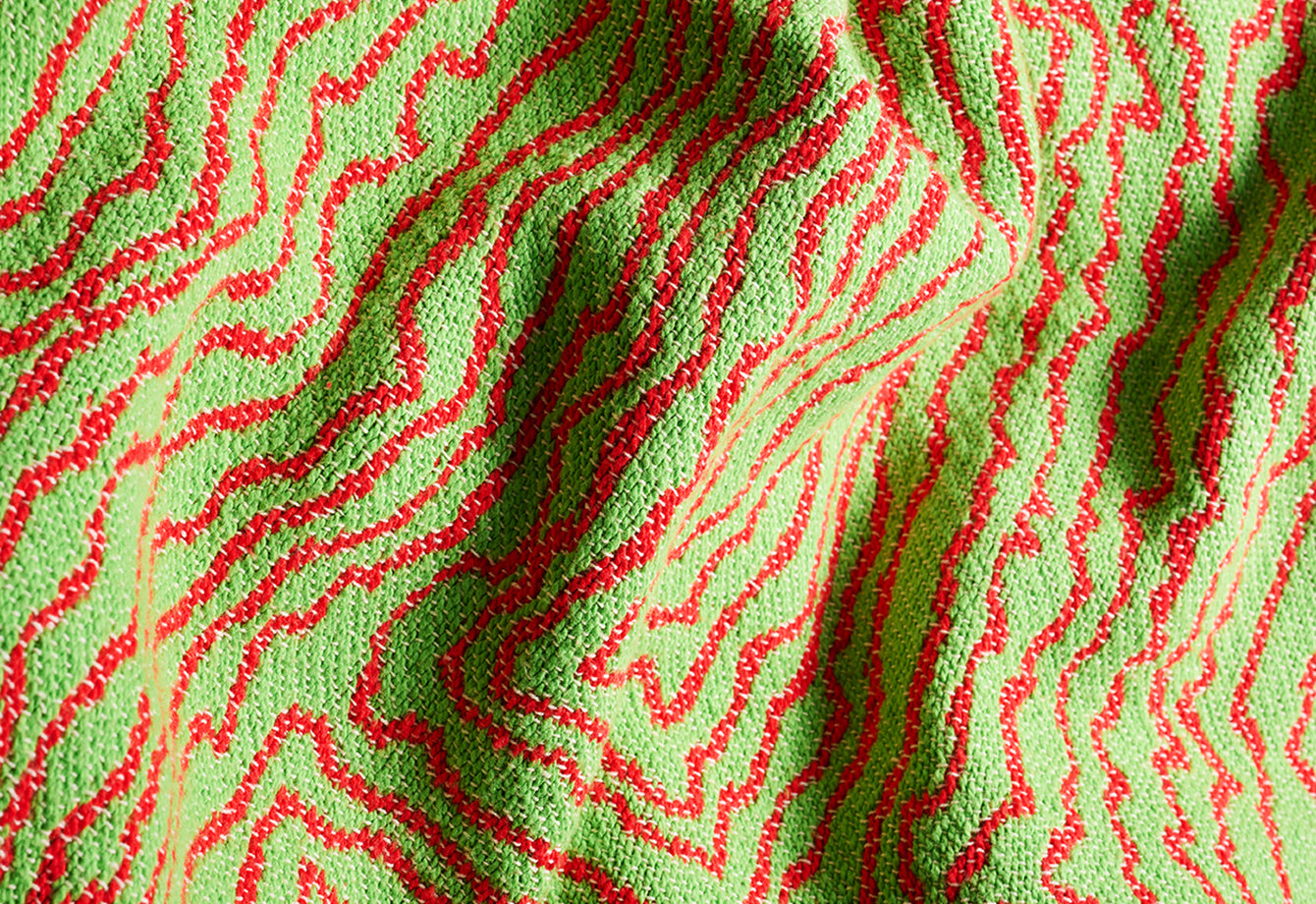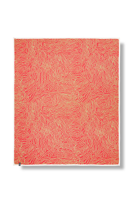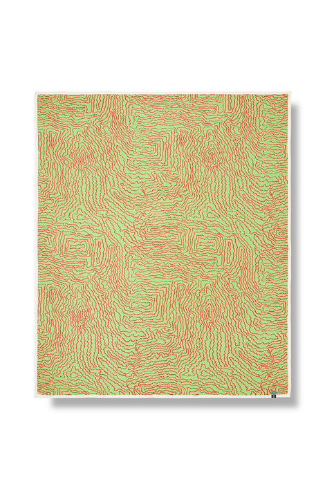 La couverture Earth capture le rythme des paysages à travers des lignes fluides et labyrinthiques aux tons rouge et vert vif. Son motif évoque des cartes topographiques et des formes organiques, célébrant l'interdépendance de la nature. Plus qu'une simple couverture, c'est une œuvre d'art textile qui apporte rythme et énergie naturels aux intérieurs du quotidien.