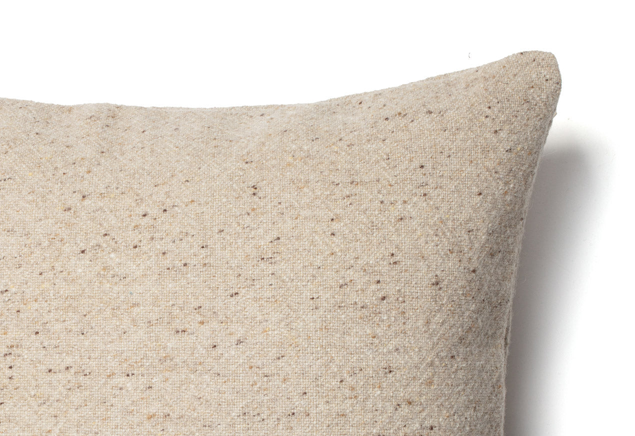 Moritz associe la robustesse du lin à la chaleur de la laine, créant un coussin tactile qui invite au toucher et à la présence. Sa teinte sable apporte une profondeur naturelle et subtile aux intérieurs.