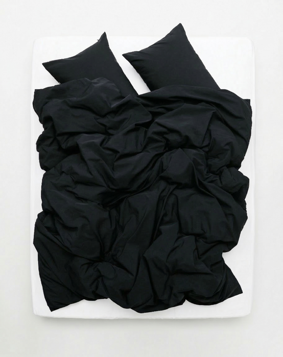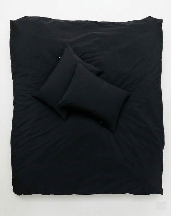 Une fois tissé, le tissu subit un processus de lavage traditionnel en bain chaud. Cette technique de finition adoucit les fibres de coton et crée un caractère de surface unique appelé boutis. Le résultat est une literie qui semble avoir été vécue mais raffinée, avec de subtiles variations tonales qui donnent à la couleur noire une profondeur riche et élégante. Chaque pièce porte le luxe discret de l'artisanat italien et la beauté des textiles fabriqués avec patience et soin.