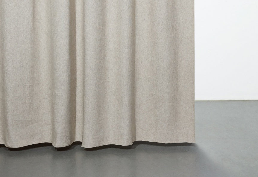 Woven in a double-face construction, the front features soft recycled cashmere while the reverse is reinforced with long-staple Egyptian cotton for strength and stability. A touch of wool adds body and resilience, ensuring the curtain maintains its form over time. Yarn-dyed for lasting colour depth, the fabric reflects a thoughtful balance of innovation, responsibility, and enduring quality.