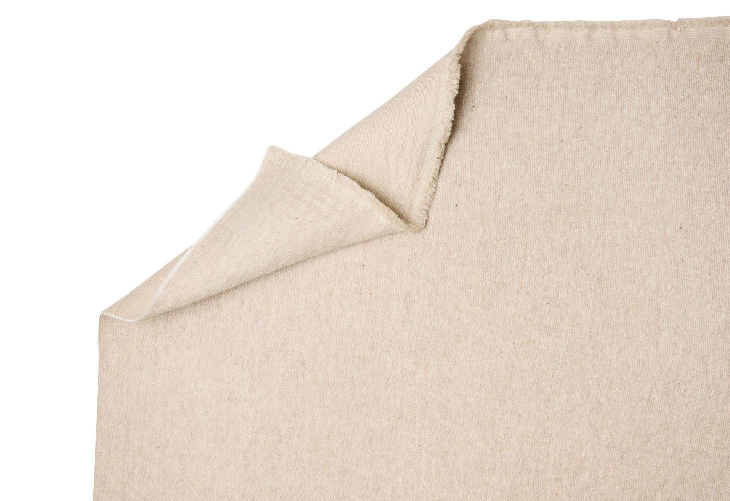 Le ton beige rehausse le caractère organique du fil, révélant de subtiles variations et une profondeur discrète au sein du tissage. Issu de fibres de haute couture, le matériau est réinterprété pour les intérieurs, où la texture et la tonalité priment sur la décoration de surface. Il en résulte un textile calme et enraciné qui apporte chaleur et équilibre à l'espace.