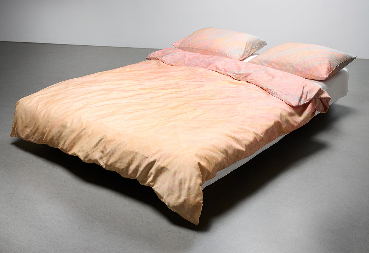 Our artist bedding is made from premium European cotton sateen, woven and printed in Italy to the highest standards. Each design is created in collaboration with international artists and transferred onto fabric with lasting color and clarity. We print only on natural cotton, never synthetics. Every duvet cover and pillowcase is hand-cut, sewn, and finished in our Italian atelier. Art meets textile — elevated through precision, purpose, and craft.