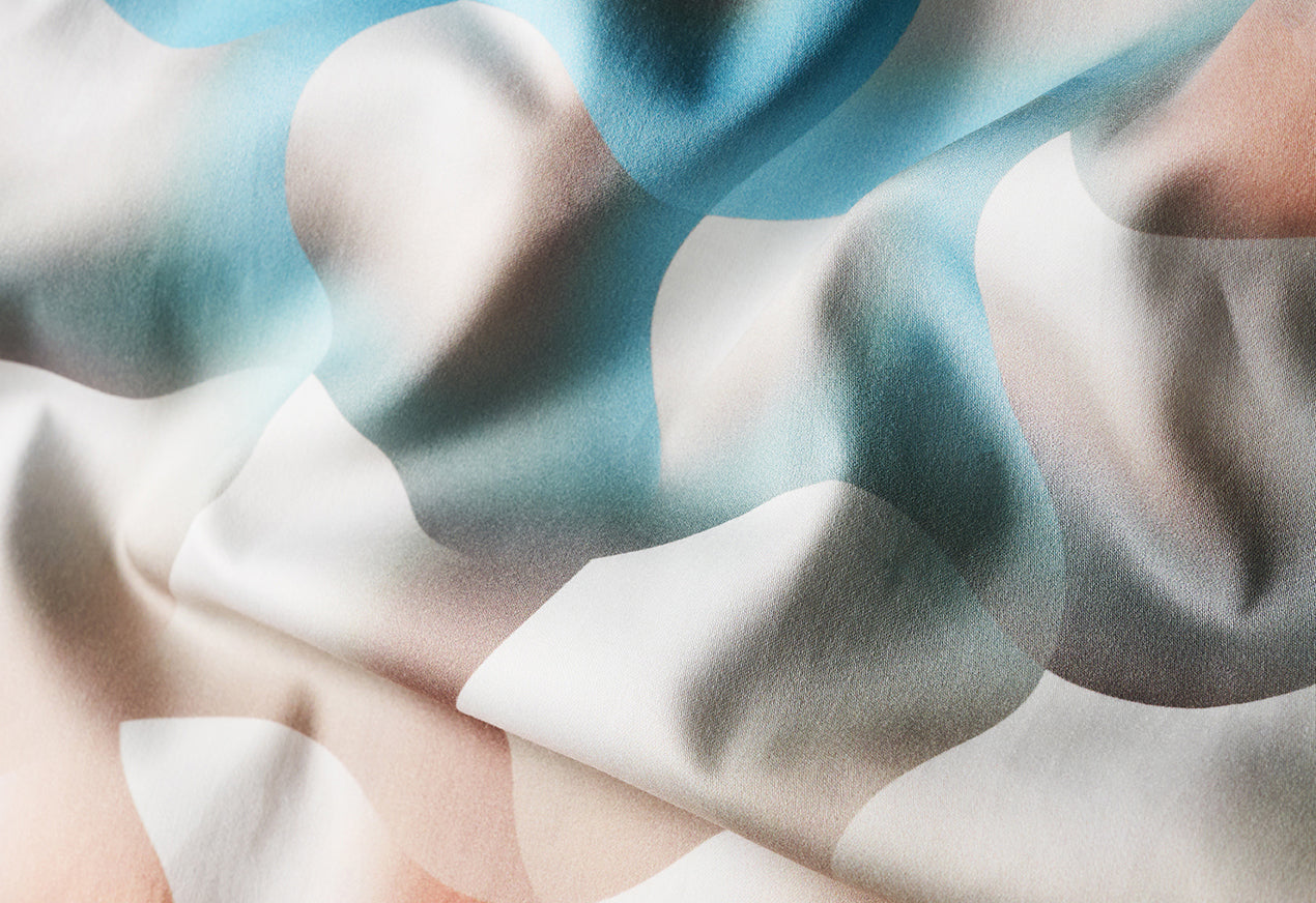 With “Wavy Plaidy Recto,” Charlotte Gentsch reimagines the familiar structure of country checks through the lens of Atelier Zanolli’s stenciled silks. Waves ripple through the plaid, dissolving rigidity into movement, while delicate gradients of pastel blue and peach breathe depth and softness into the pattern. It’s a design where heritage bends gracefully into contemporary fluidity.