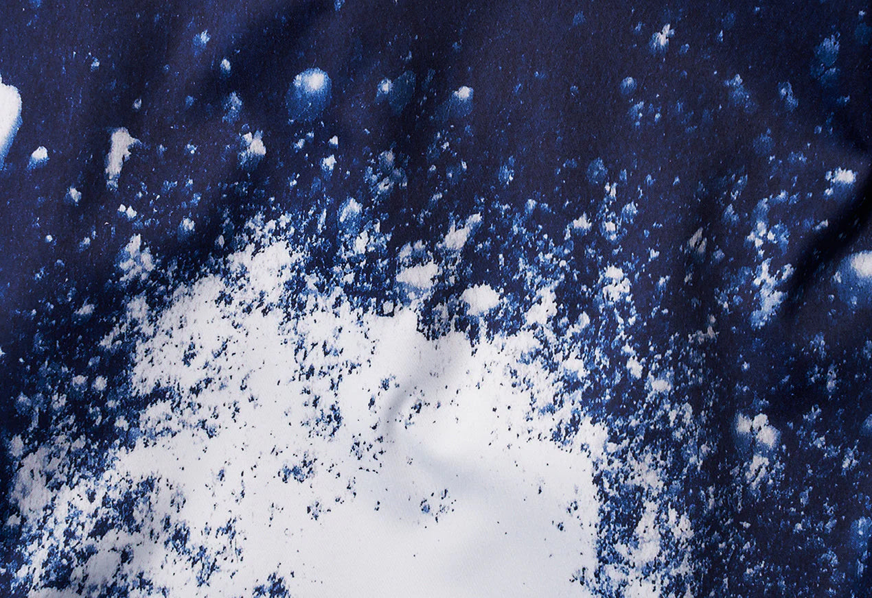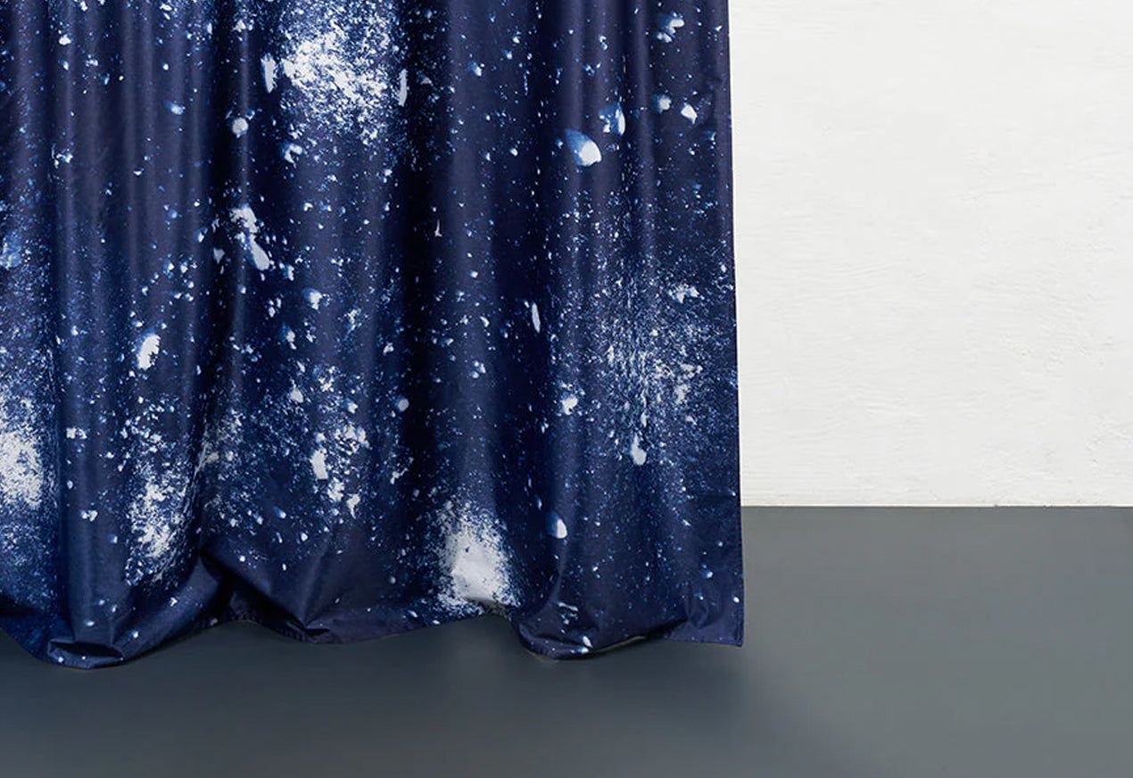Inspired by the historical resonance of Basel’s Café Spitz, Urs August Steiner’s work captures the textures of the past, translating them into a bold and immersive textile piece. Using cyanotype printing, the fabric reflects the traces of sand grains, shadows, and aged surfaces, preserving a moment in time with extraordinary depth and contrast. The monochromatic abstraction adds a layer of history and sophistication, making it ideal for modern spaces, architectural interiors, or art-focused environments. Whether viewed as an echo of history or a study in texture, this blackout curtain transforms a room into a dialogue between past and present.