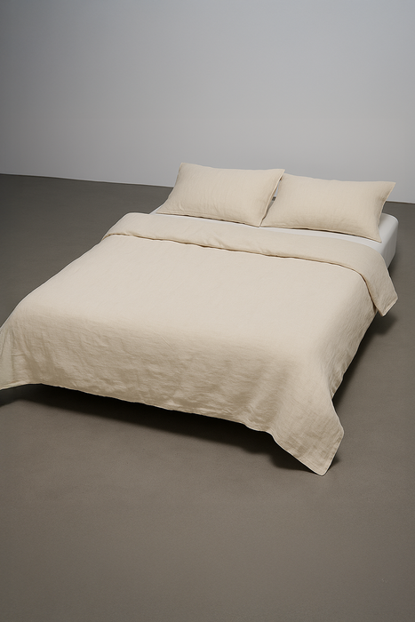 Our hemp bedding is woven in Italy using premium yarn-dyed natural fibres that create a warm, organic tone. A light stonewash softens the fabric while preserving its strength, giving it a calm, breathable structure that feels welcoming from the first night. With its natural texture and relaxed drape, this bedding brings quiet luxury into everyday living.