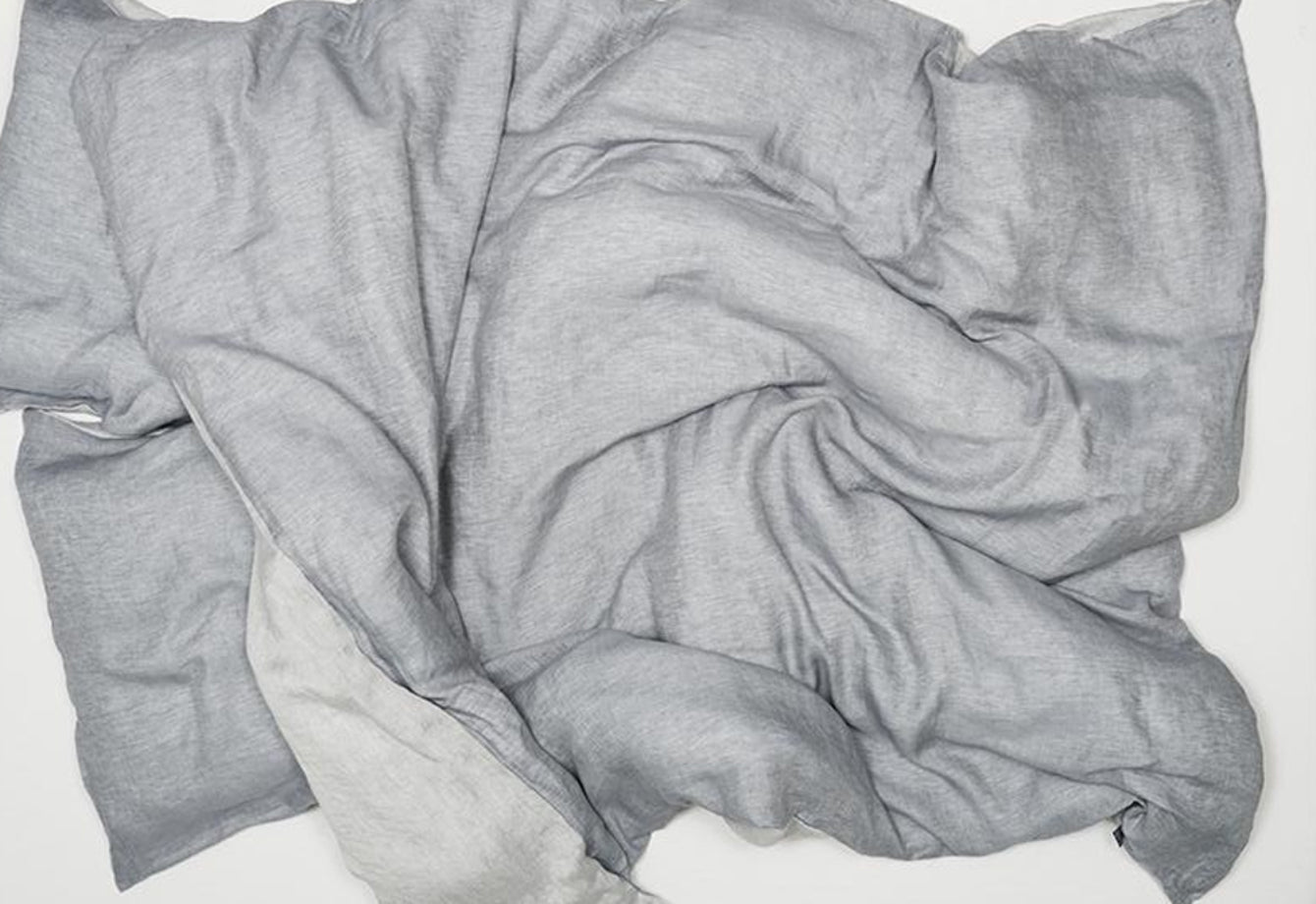 Two-tone stonewashed linen in elegant Quartz Grey and Chalk. Handcrafted in Italy with yarn-dyed Belgian linen—modern minimalism at its finest.