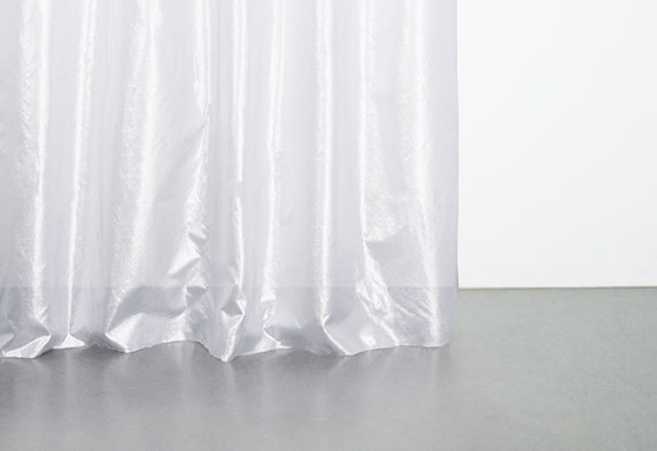 Woven in Italy with flame retardant yarns, our sheer curtains balance lightness with structure. Inspired by 19th-century French silk traditions and adapted for modern interiors, the weave filters daylight while preserving privacy. Each extra-wide panel is hand-cut, sewn, and finished in our Italian atelier. Subtle seams and universal curtain tape complete a piece designed to soften space without distraction. Quietly present. Carefully made.