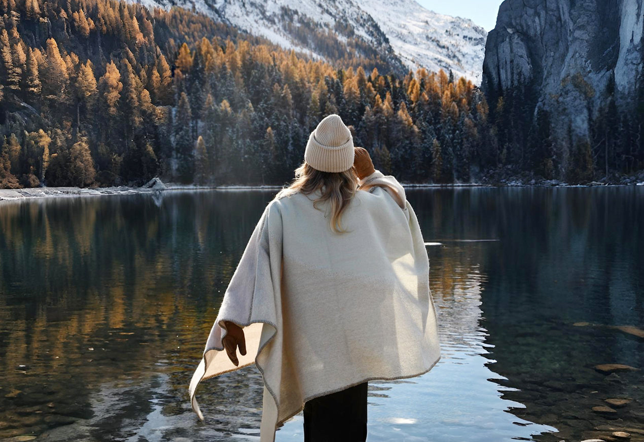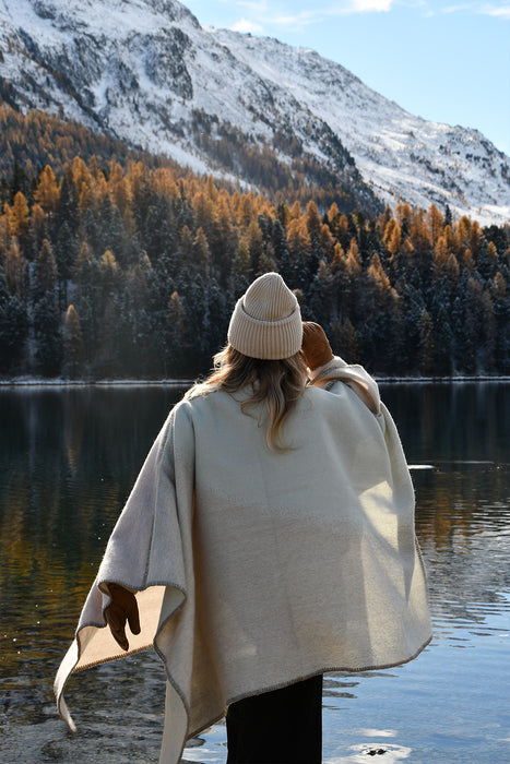 Woven in Europe from 100 percent merino wool, this poncho delivers natural softness, warmth, and breathability. The knit drapes smoothly and is comfortable against the skin, making it ideal across all seasons. It is machine washable on a gentle cold wool program and suitable for dry cleaning, ensuring lasting quality and easy care.